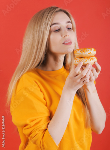 donut, donut, donut, donut, eat, expression, face, fashion, female, food, girl, glazed, hand, happy, icing, isolated, attractive, background, beautiful, blond, calorie, caucasian, chocolate, colourful, cute, delicious, dessert, make-up, 1, people, person, pink, pretty, smile, studio, woman, young, yellow