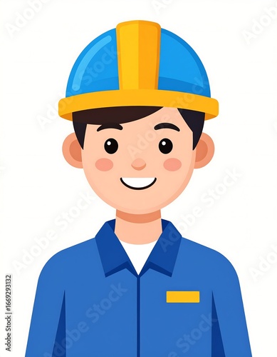 construction, men at work, portrait, smiling, studio, person, male, happy, blue, uniform, helmet, avatar, illustration, character, cheerful, profession, industry, job, occupation, employee, technician
