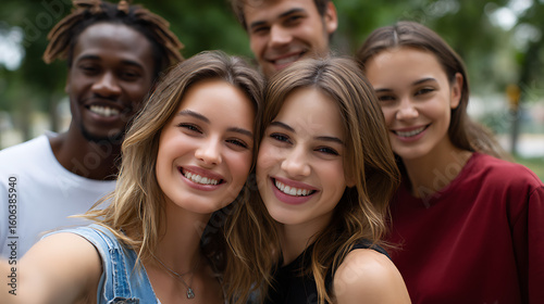friends, group, people, happy, smiling, young adult, diversity, togetherness, friendship, portrait, park, summer, joyful, cheerful, positive, casual attire, closeup, lifestyle, candid, authentic, real people, genuine, connection, together, oneness, multiracial, youth, fun, carefree, vibrant, bright, natural light, green background, blurred background, selfie, photo, image, photo, group picture