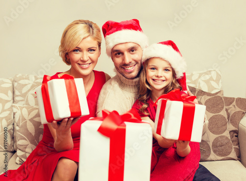 smiling family giving many gift boxes