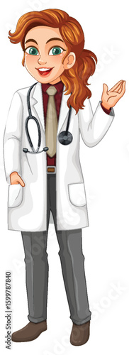 medical professional, consultation, brown hair, green eye, hand gesture, full body, isolated on white, white background, people, medicine