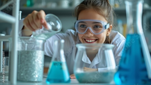 girl, scientist, science, experiment, laboratory, laboratory, chemical, beaker, flask, goggles, research, education, school, student, happy, smiling, excited, discovery, innovation, technology, chemistry, biology, physics, learning, cognition, experimentation, glassware, equipment, researcher, scientific, investigate, test, analysis