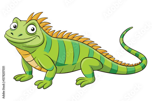 iguana, reptile, cartoon, green, animal, lizzard, scale, smiling, wildlife, nature, exotic, tropical, character, white background, pet, cheerful, friendly, fun, spike, striped, bright green, scaled, playful