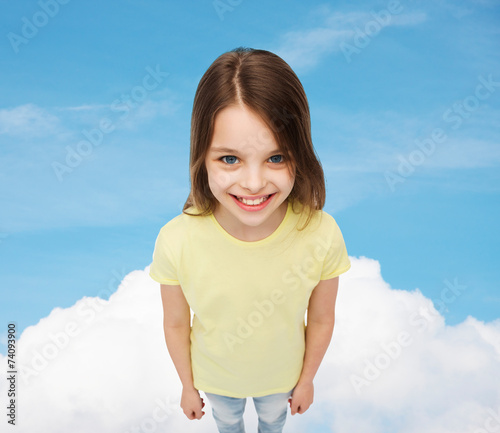 smiling, happy, little, girl, children, blank, t-shirt, looking, up, cute, happiness, person, people, children, preteen, teenage, teenage, preteen, attractive, white, sweet, teenage, casual attire, female, healthy, young, nice, adorable, well-being, lovely, joyful, cheerful, beautiful, pretty, carefree, childhood, funny, standing, top, copy space, copy, space, advertisement, advert, advertisement, advertising, cloud, blue, sky, background