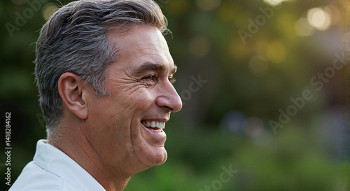 smiling, man, happiness, joy, greenery, lifestyle, elderly, middle-aged, cheerful, nature, sunlight, joyfulness, facial expression, relaxation, leisure, summer, peaceful, content, positive, casual attire, senior, natural, well-being, vibrant, calmness, harmony, connection, friendly, smiling face, serene, joyful, carefree, personal, home, health, bright, calm