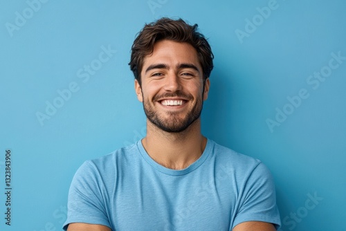 smiling, man, blue, t-shirt, laughing, crossed, arm, happy, portrait, casual attire, studio, photogenic, young, attractive, friendly, relaxed, confident, adult, modern, student, positive, optimistic, hipster, charming, male, face, background, light, natural, soft, lighting, texture, inspired, isolated, fun, bristle, young men, 20s, camera, people, person, guy, adult male, smile, casual attire, laughter, modern style, freelancer, minimalistic
