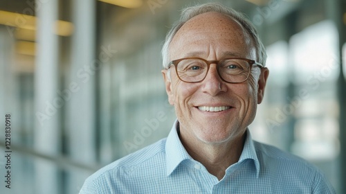 man, office, environment, smile, mature, glasses, modern, portrait, professional, happiness, presence, outlook, vision, attire, positive, cheerful, atmosphere, older, productive, friendly, relax, demeanor, dynamic, employee, network, casual attire, posture, corporate, performance, background, sharpened, business, workspace, leadership, confidence, setup, adult, urban, engage, ambience