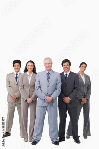 Smiling mature salesman standing together with his team