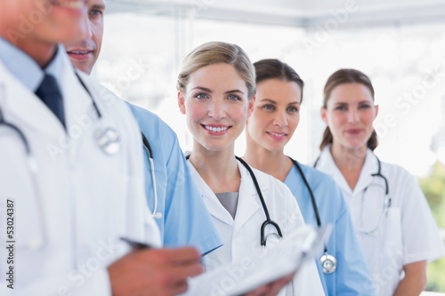 Smiling medical team in row
