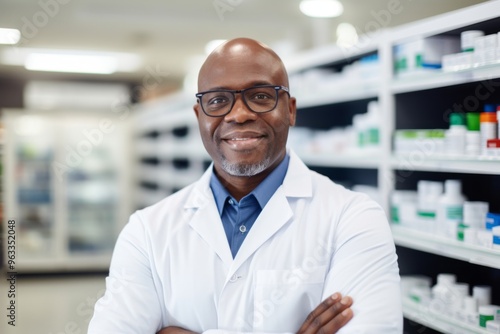 people, smiling, male, man, portrait, african american, middle-aged, apothecary, professional, health care, medicine, work, occupation, mature, adult, medicals, health, customer service, friendly, confident, indoor, retail, hospital, clinic, prescription, service, real people, assistance, expertise, uniform, safe, accurateness, responsible, support, consultation, dedicated, pharmacy, wellness, compassionate, trustworthy, modern, technology, lifestyle, copy space, 1