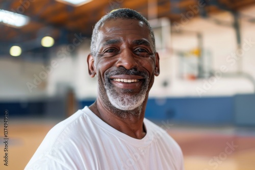 people, smiling, portrait, senior, male, african, american, basketball, player, white, man, shirt, gym, indoor, sport, athletic, emotion, activity, occupation, work, athlete, fitness, exercise, training, healthy, confident, energetic, strength, performance, skill, life events, adult, team, coaching, lifestyle, veteran, black, culture, background, practice, determined, technology, modern, 1, lifestyle, copy space