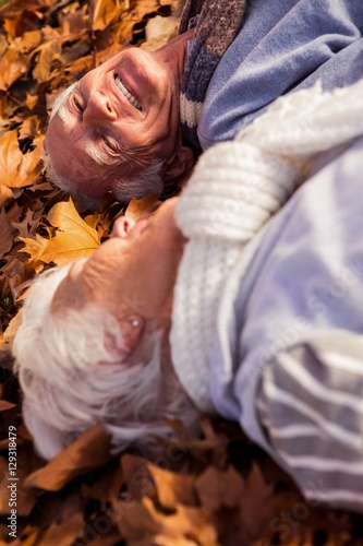 Smiling senior couple lying on the ground