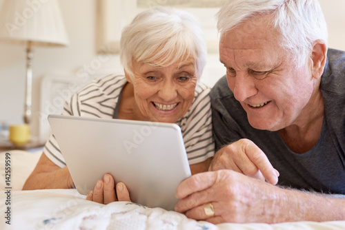 70s, adult, bed, bedchamber, candid, caucasian, comfortable, conversation, copy space, couple, elderly, electronic mail, female, golden years, happiness, home, husband, cyberspace, lifestyle, looking, love, lying, male, man, mature, morning, old, online, pajama, people, positivity, real, human relationships, relaxing, retired, senior, senior citizen, smiling, talking, technology, together, touch screen, 2, wife, wireless, woman