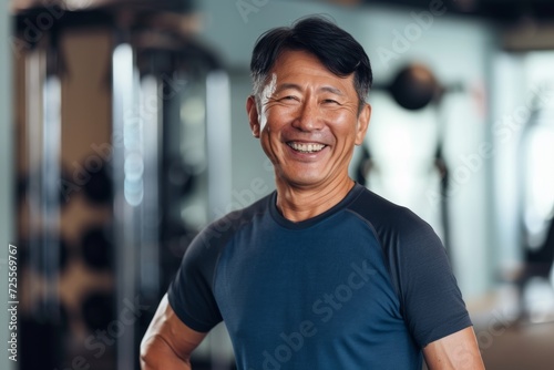 man, senior, middle-aged, fitness, gym, studio, center, exercise, health, active, muscle, lifestyle, smile, asian, confident, casual attire, racked, physical exercise, motivation, enthusiast, healthy living, indoor, strength, vitality, joyful, cheerful, activewear, well-being, ageing, wellness, portrait, happy, bodybuilding, train, training, equipment, background, leisure, physical, activity, mature, adult, athletic, positive, 1, people
