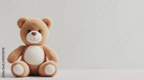teddy, bear, plush, toy, stuffed, animal, cute, adorable, soft, fluffy, brown, white, sitting, smiling, happy, playful, childhood, nostalgia, comfort, friends, love, care, innocence, sweet, gentle, fun, joy, cheerful, children, playtime, gift, present, huggable, cuddly, fabric, fur, eye, nose, mouth, paw, background, simple, minimalism, studio, photo, still, life