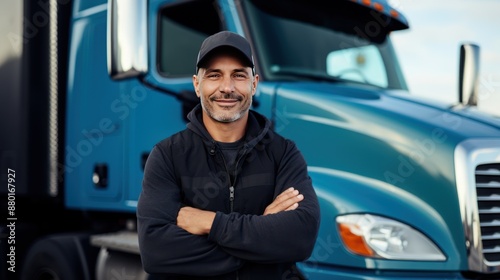 smiling, truck, driver, confident, portrait, happy, vehicle, man, transport, logistic, transportation, smiling face, professional, industry, commercial, road, work, person, outdoors, cargo, load, truck driver, truck driver, cheerful, safety, career, man, service, travel, automotive, pose, job, friendly, working, delivery, trucking