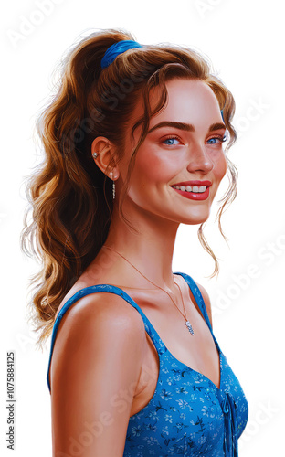 Smiling Woman in Blue Dress - Digital Illustration with Realistic Detail