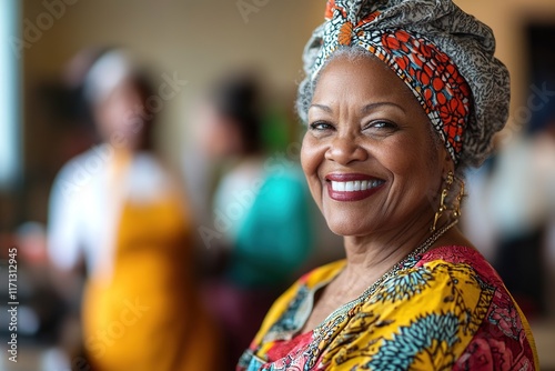 woman, smiling, african, attire, colourful, heritage, celebration, cultural, joy, pride, diversity, portrait, happiness, pattern, vibrant, elder, joyous, fashion, identity, ethnicity, beauty, senior, bright, elegance, cheerful, style, accessory, empowerment, festivity, tradition, history, community, lineage, ancestry, female, mature, warmth, event, copy space