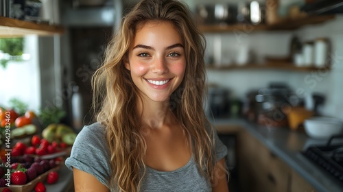 woman, smile, happy, healthy, kitchen, food, fruit, vegetable, diet, lifestyle, wellness, beauty, hair, skin, young, natural, positive, energy, fresh, organic, fitness, healthy eating, weight loss, nourishment, physical exercise, gym, exercise, motivation, inspiration, care, clean, simple, home, cooking, delicious, plate, bowl, oven, stove, breakfast, lunch, dinner, active, stylish, modern