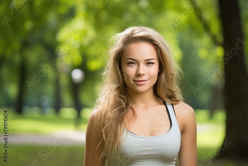 smiling woman, blonde hair, natural beauty, casual clothes, summer day, healthy lifestyle, happy woman, smiling face
