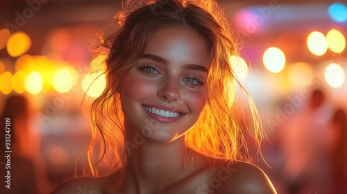 woman, portrait, female, face, smile, girl, happy, joyful, beautiful, attractive, gorgeous, blond, hair, eye, blue, skin, natural, glowing, light, warm, light, gold, glow, sun, sunlight, evening, night, festival, party, celebration, fun, laugh, candid, photo, model, fashion, lifestyle, human, people, close, up