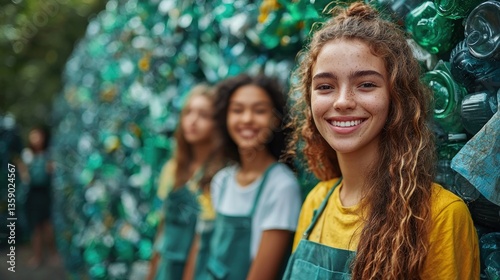 recycling, reuse, environment, eco, sustainable, green, planet, earth, nature, woman, girl, female, team, group, volunteer, community, service, happy, smile, smiling, friends, together, action, change, future, hope, clean, bottle, glasses, waste, material, collection, sort, process, industry, factory, energy, conservation, protection, responsible, earth, global, effort, support, people, portrait, young, adult, beautiful