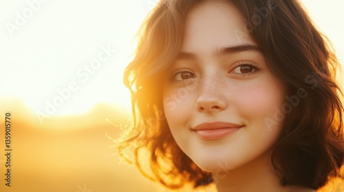 woman, young, smile, portrait, face, girl, hair, person, beauty, beautiful, happy, light, sunlight, sun, warm, eye, skin, pretty, happiness, glow, brunette, closeup, outdoors, dreamy, dream, calm, relaxed, serene, freckle, youth, carefree