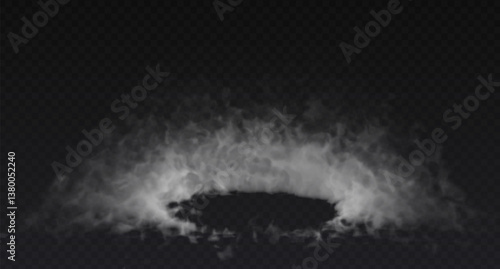 Smoke effect on transparent dark background. Fog gray cloud above the floor surface.