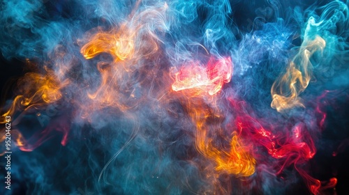 Smoke trails from fireworks bursting in the night sky, with colorful sparks illuminating the clouds of smoke, capturing the excitement of a celebration