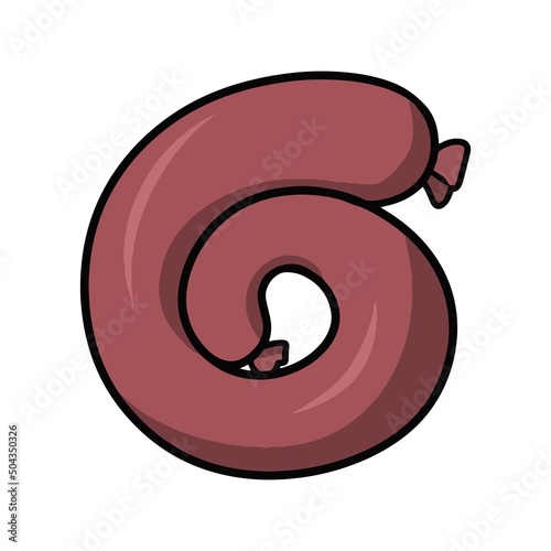 Smoked delicious pink sausage rolled into a ring, vector cartoon illustration