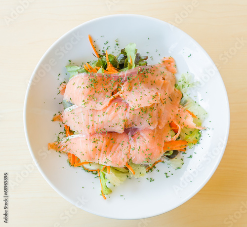 cooked, cookery, culinary, dinner, dish, fish, food, fresh, fried, epicure, green, healthy, leaf, lettuce, light, low, lunch, meal, salad, salmon, smoked, tomatoes, vegetable