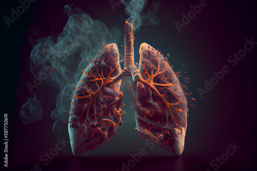 Smoker lungs, damaged lungs, cigar, cigarettes, smoking is bad. Created with Generative AI technology