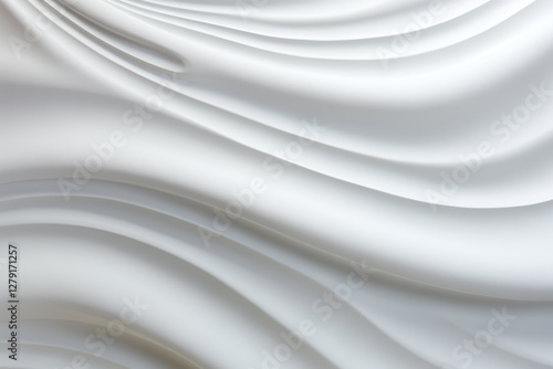 Smooth matte white wall with subtle texture and flowing curves creates serene atmosphere. gentle waves evoke sense of calm and elegance, perfect for modern interiors