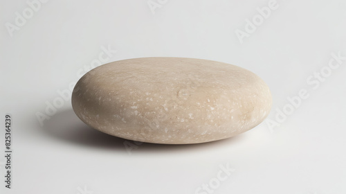 Smooth, round beige stone placed against a white background, showcasing its texture and simplicity in a minimalist style.