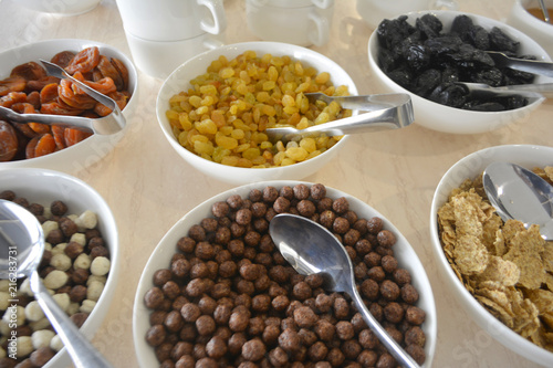 Smorgasbord in restaurant. Breakfast table