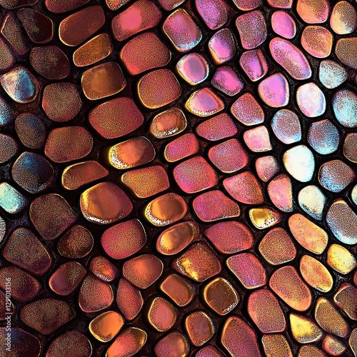snakeskin, abstract, metallic, detail, vibrant, highlight, seamless, pattern, design, texture, artistic, modern, decorative, background, wallpaper, trendy, smooth, creative, minimal, fluid, symmetry, elegant, contemporary, intricate, dynamic, harmony, reflective, repetitive, innovative, composition, visual, arrangement, balanced, aesthetic, gradient, colourful, digital, aglow, radiant, glossy, exotic, futuristic, shimmering
