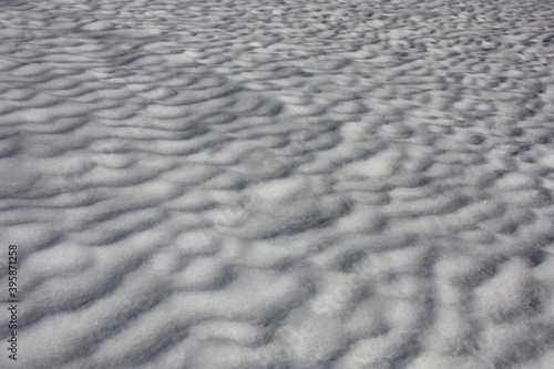 Snow cover in the spring. Wavy surface and brilliant crust. Play of light and shadow.