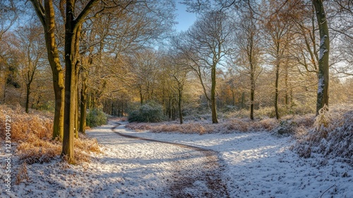 snow, path, winter, timberland, tree, forest, sun, light, shadow, nature, landscape, scenery, cold, frosty, branch, bark, leaf, ground, white, brown, glacé, tranquil, serene, peaceful, quiet, calm, stillness, beauty, magical, wonder, outdoors, wilderness, environment, ecosystem, season, december, jan, february, march, air, sky, sunlight