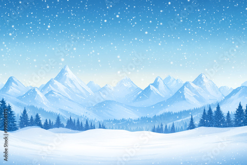 snow, mountain, winter, christmas, landscape, nature, sky, blue, white, cold, forest, tree, snowy, glacé, season, holiday, scenic, background, scenery, illustration, artwork, art, graphic, design, digital, wonderland, eve, day, new, year