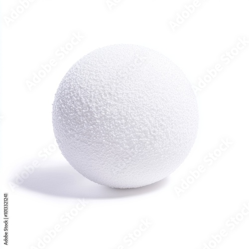 Snowball white. White Styrofoam ball with a textured surface, isolated on a clean white background, showing fine details of its structure.