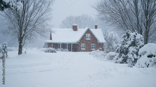 winter, snow, house, brick, home, tree, nature, cold, season, white, peaceful, glacé, quiet, residential, outdoors, weather, landscape, ice, frost, rural, scenic, suburb, architecture, cosy, covered, driveway, street, calm, idylli, snowfall, fresh, serene, seasonal, chill, overcast, timberland, stillness
