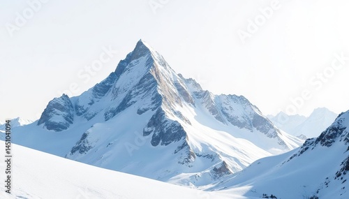 Snow-covered mountain peak, bright white background, snowy, travel, image