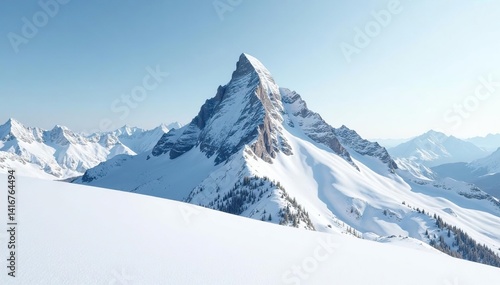 Snow-covered mountain peak, stark white landscape, snow, untouched, texture