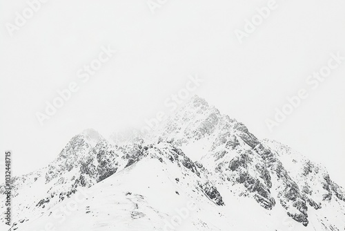 snow, mountain, peak, white, grey, sky, landscape, winter, nature, cold, frost, ice, glacé, rocky, hill, summit, elevation, scenic, wilderness, serenity, calmness, pristine, untouched, beautiful, majestic, breathtaking, monochrome, minimalist, abstract, art, photo, image, graphic, background, design, element