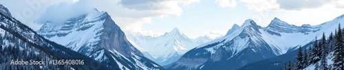 Snow-covered mountain range in Banff National Park, showcasing the rugged beauty of the Canadian Rockies, Alpine, Exploration