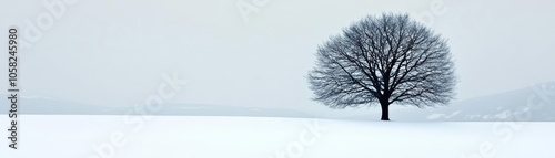 Snow-covered trees in a remote, untouched landscape, isolated from civilization, winter isolated