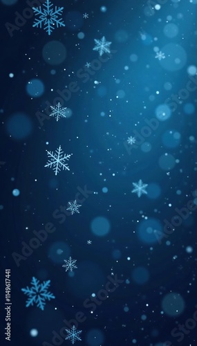 Snowflakes gently falling on a dark blue background, calm storm, winter wonderland, cold weather