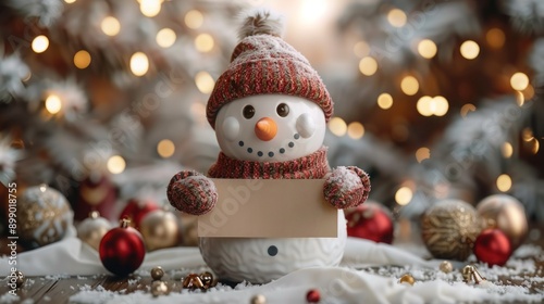 Snowman Greeting Card Template with Gold Confetti: Happy New Year Mockup for Winter Holidays
