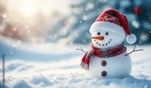 snowman, christmas, winter, snow, holiday, hat, christmas, vector, illustration, cold, snowflake, cartoon, card, tree, celebration, decoration, season, year, foulard, new, december, fun, happy, greeting, carrot, three-dimensional, real, merry, red, smile, bokeh