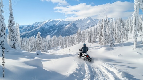 snowmobile, winter, mountain, snow, tree, forest, adventure, cold, landscape, outdoors, riding, activity, glacé, white, nature, scenic, travel, recreation, sport, vehicle, mountain, sky, cloud, blue, path, trail, covered, sunny, day, sunlight, wilderness, frosty, ice, season, tour tourism, exploration, journey, destination, expedition